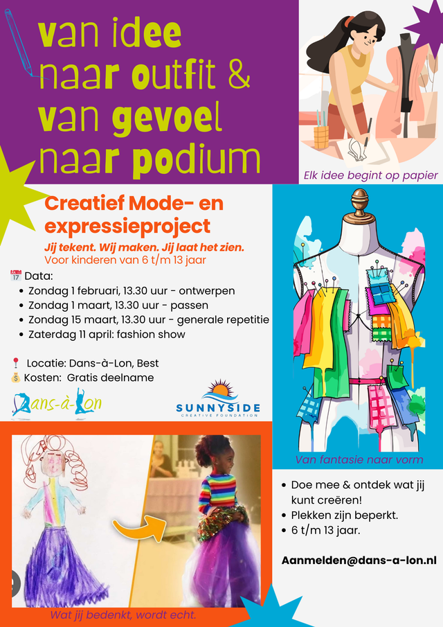 Het project is geschikt voor kinderen die houden van creëren, dansen, mode en expressie – ervaring is niet nodig, enthousiasme wel!
