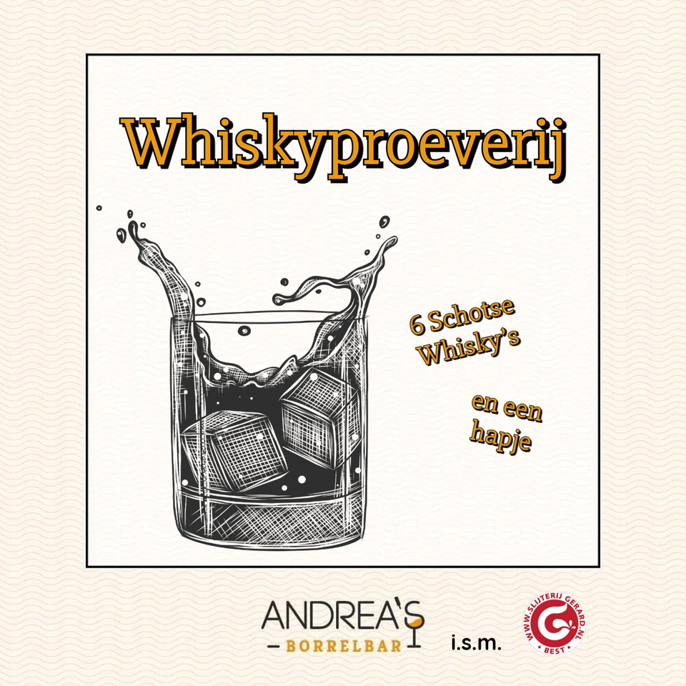 Geniet van 6 Schotse Whisky's tijdens onze whisky proeverij op woensdagavond 14 januari van 19.30u tot 22.00u. Gerard van slijterij Gerard Best heeft speciaal 6 Schotse whisky's uitgekozen en zal deze met een begeleidende uitleg en presentatie aan jullie presenteren. Uiteraard zorgen wij voor een lekker (Schots) hapje erbij. De kosten bedragen 25 euro per persoon en dient op de avond zelf, vooraf aan de proeverij, te worden betaald. Aanmelden kan via www.andreasborrelbar.nl/whisky-proeverij.