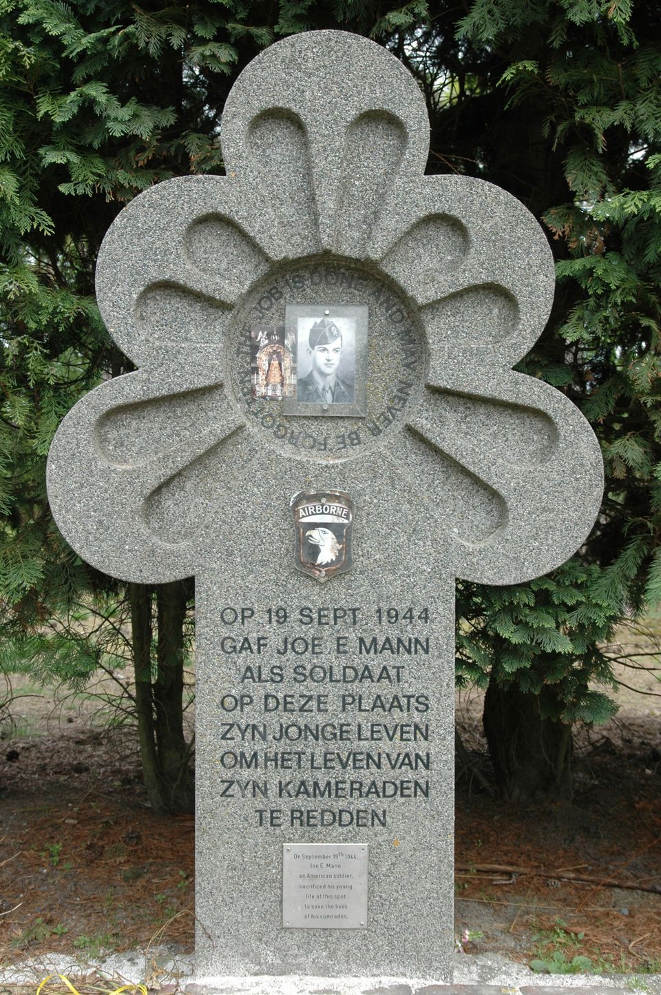 Het Joe Mann-bos ligt officieel in de natuurgebieden Sonse Heide en Nieuwe Heide. Waarom noemt bijna iedereen het dan het Joe Mann bos? Veel mensen denken dat het verwijst naar het Joe Mann natuurtheater en monument. Maar die zijn op hun beurt vernoemd naar een jonge Amerikaanse soldaat die hier op 19 september 1944 op een dramatische en heldhaftige wijze het leven liet. Joe Mann was 22 jaar toen hij op 17 september 1944 op de Sonse Heide gedropt werd tijdens de bevrijdingsoperatie Market Garden. Bij de gevechten tegen de Duitsers raakte de Joe Mann in de buurt van het Wilhelminakanaal gewond aan beide armen en handen. Hij zocht samen met anderen gewonden beschutting in een kuil bij het kanaal. Bij een aanval door de Duitsers kwamen er granaten in de kuil terecht. De meeste granaten konden de gewonden teruggooien voordat ze ontploften. Maar Joe Mann kon dat niet doen door de verwondingen aan zijn handen. Toen een granaat achter zijn rug viel, aarzelde hij geen moment. Hij liet zich ruggelings over de granaat vallen. Bij de explosie liet hij het leven, maar redde hij het leven van zijn kameraden. Op zijn sterfplek aan de Boslaan-Zuid staat de Joe Mann grafsteen. Vanuit het Joe Mann paviljoen kun je door de prachtige natuur naar dit monument wandelen. Deze route is ook toegankelijk voor gehandicapten. Wil je meer weten over de heftige bevrijdingsstrijd in Best. De Liberation Route voert je langs de plekken die nu vredig lijken, maar waar een bloedige strijd is gestreden.