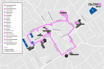 In Best bewonder je lichtkunst op pleinen, plantsoenen en verborgen in de straten op onverwachte plekken. De route is een plek waar mensen samenkomen en ervaringen delen. Van jong tot oud, nationaal of internationaal, GLOW zorgt voor gedeelde momenten en herinneringen. Wandel zo’n drie kilometer langs twaalf lichtkunstwerken, gecreëerd door (inter)nationale kunstenaars, speciaal voor én door bewoners en bezoekers.